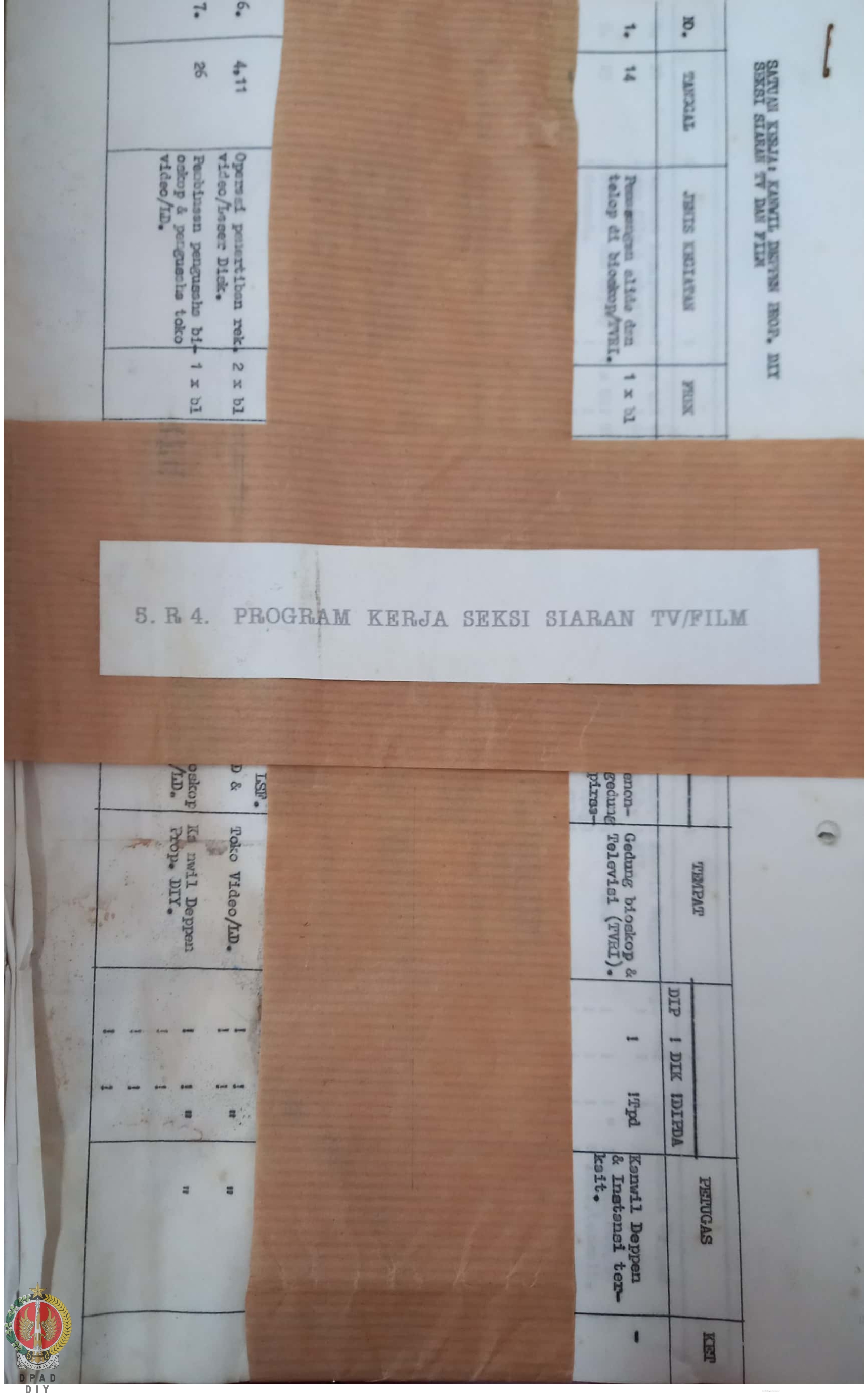 Bendel Program Kerja Kantor Wilayah Departemen Penerangan Provinsi Daerah Istimewa Yogyakarta Seksi Siaran TV dan Film bulan Januari, Maret, April, Mei, Juni, Juli, Agustus, September, Oktober, November, dan Desember 1998 Tahun Anggaran 1998/1999