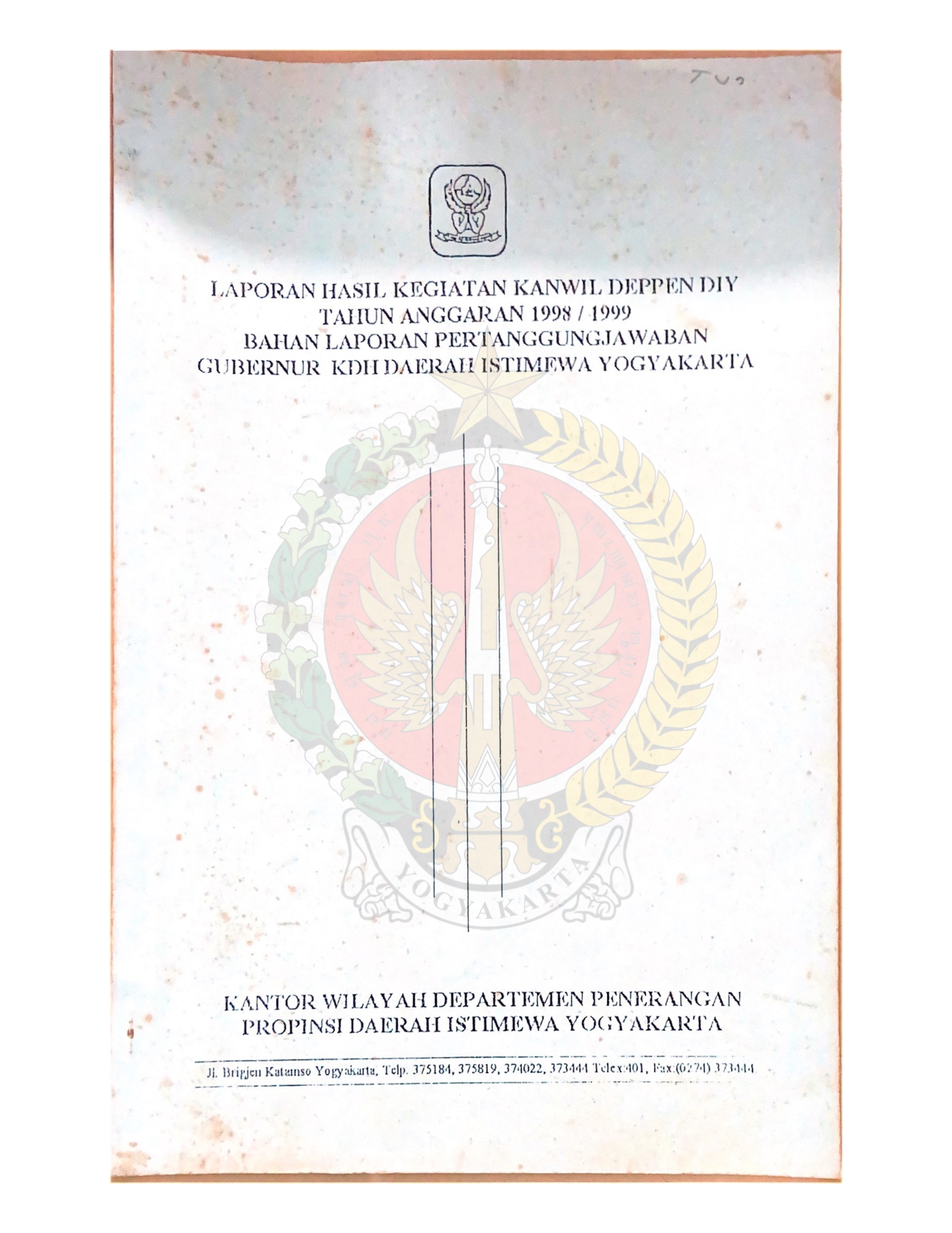 Laporan Kantor Wilayah Departemen Penerangan Provinsi Daerah Istimewa Yogyakarta dalam Forum Komunikasi, Koordinasi, dan Konsultasi Operasi Penerangan (FOKKOPEN) 1998.