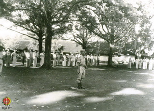 Komandan Pasukan P.K.D sedang memberikan laporan.