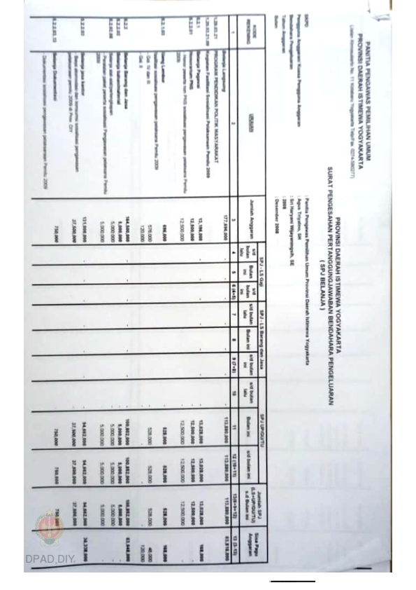 Surat tanda setoran belanja langsung program pendidikan politik masyarakat oleh Panwaslu Provinsi DIY Bulan Desember 2008.