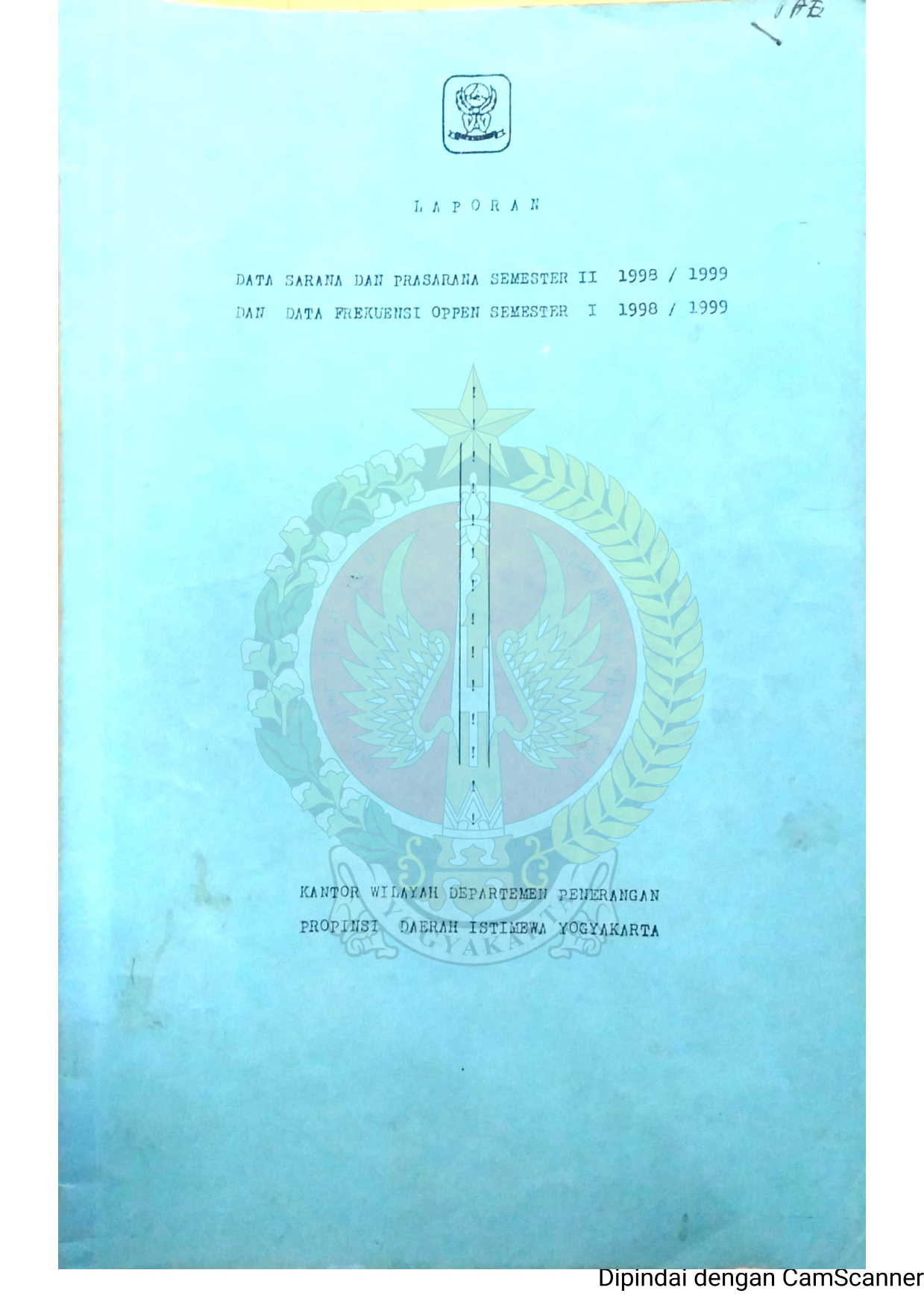 Laporan data Sarana Prasarana Semester II 1998/1999 dan data frekuensi operasional penerangan Semester I 1998/1999 di Kantor Wilayah Departemen Penerangan Provinsi Daerah Istimewa Yogyakarta dan Kantor Departemen Penerangan Kotamadya/ Kabupaten se Provinsi Daerah Istimewa Yogyakarta.