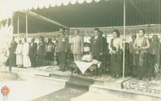 Item Bpad.Orba.F3.VI.660 - Menteri Ali Murtopo beserta ibu didampingi Sri Paku Alam VIII dengan para pejabat Muspida Sleman berdiri di panggung kehormatan.