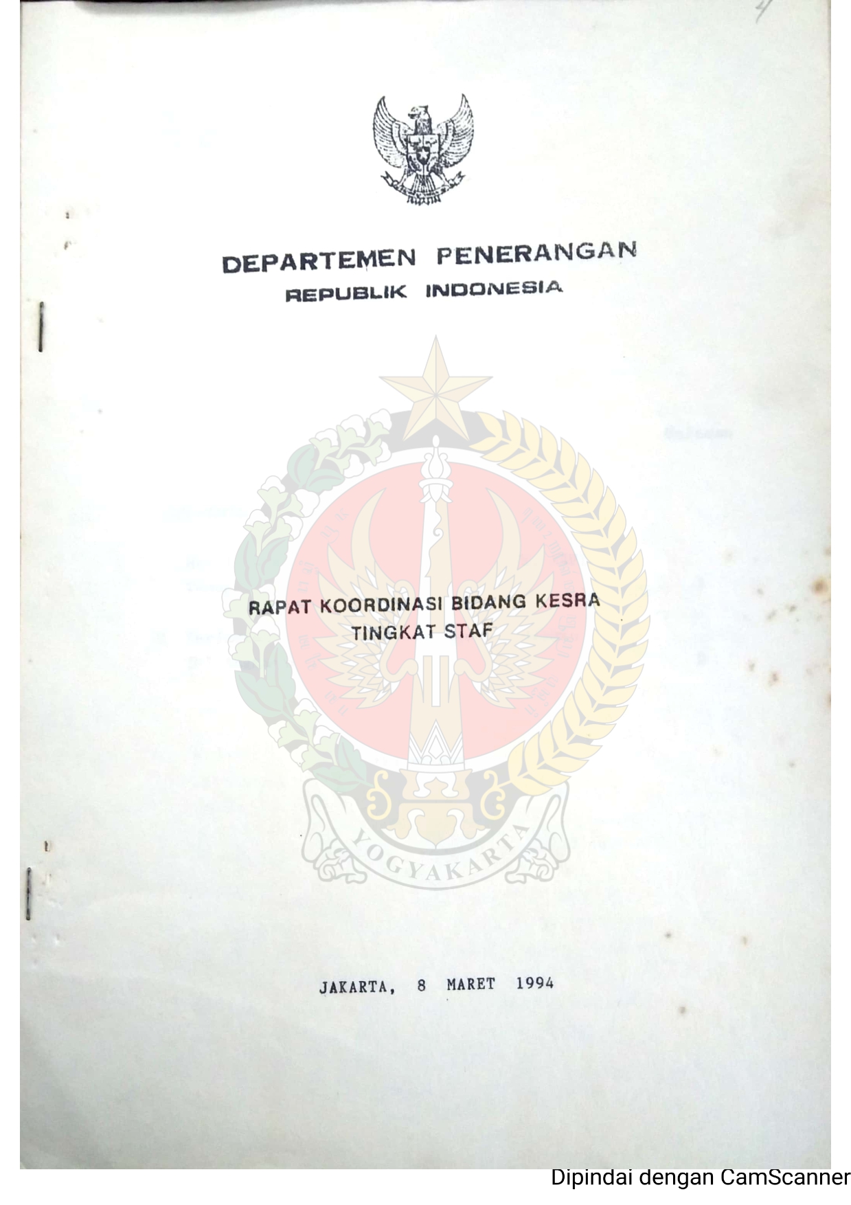 Rapat Koordinasi Bidang Kesra/Kesejahteraan Rakyat Tingkat Staf bulan Maret tahun 1994.