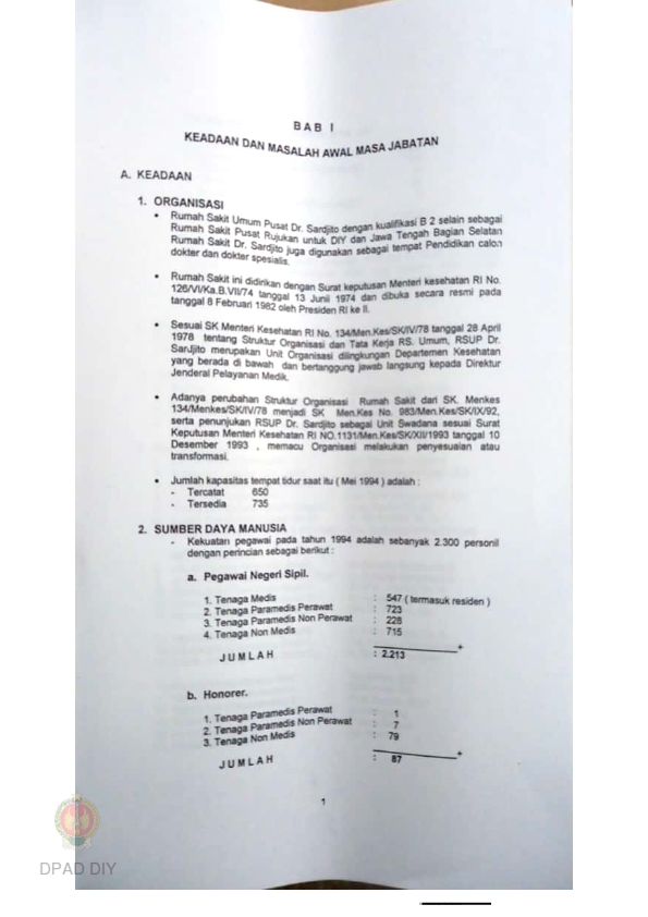 Memorandum Direktur RSUP Dr. Sardjito Yogyakarta 16 Mei 1994 – 31 Oktober 1998 dalam rangka Serah Terima Jabatan Direktur RSUP Dr. Sardjito Yogyakarta.