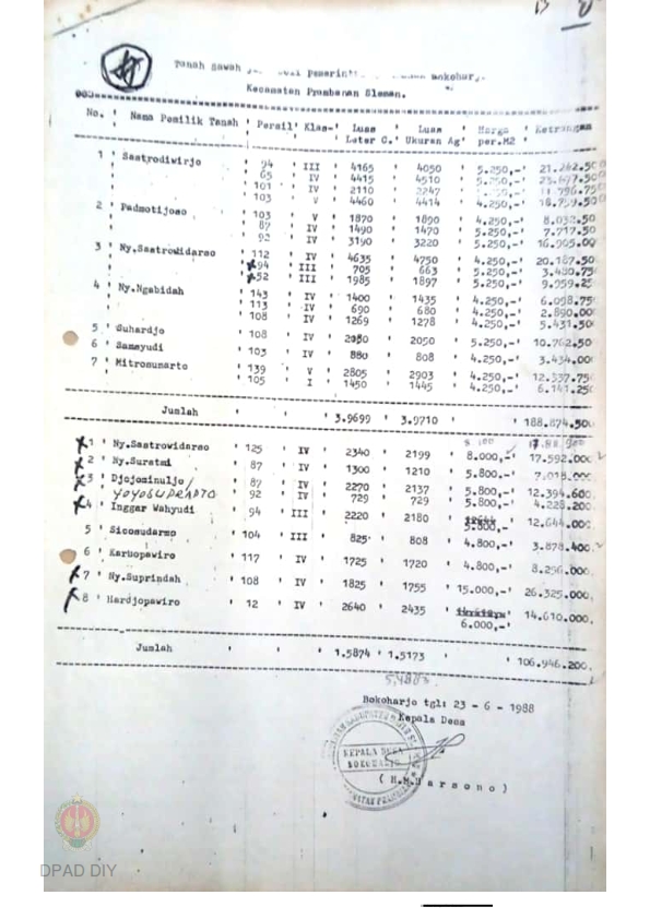 Tanah sawah yang dibeli pemerintah desa Bokoharjo Kec. Prambanan Sleman.